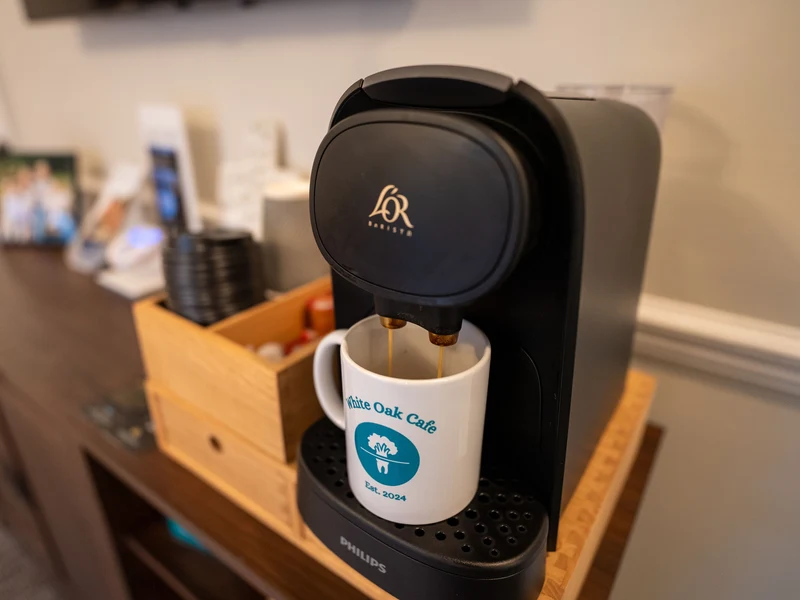 Nestled in the heart of Homewood, our office is located on Oxmoor Road just a block from City Hall. We often hear that our office “feels like home,” and we intend to keep it that way. Whether you are here for an appointment or are bringing a loved one, we are committed to making your visit as comfortable and enjoyable as possible. Our child-friendly waiting area helps families settle in, and our espresso bar adds a comfortable, modern touch for adults. Patients also comment often on our oral hygiene area, which feels open and relaxing thanks to its spacious layout and French-style windows that bring in abundant natural light. With the cozy environment and genuine care of our team, we hope you’ll look forward to your appointments and enjoy the stay while you’re here.